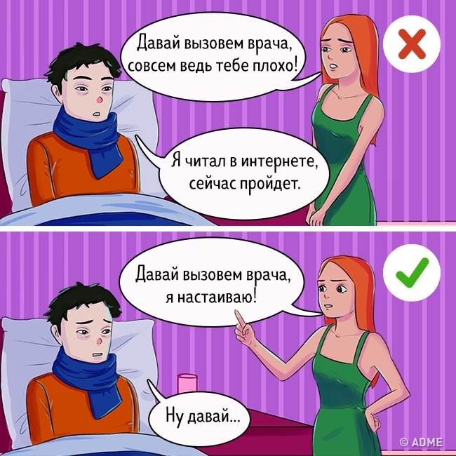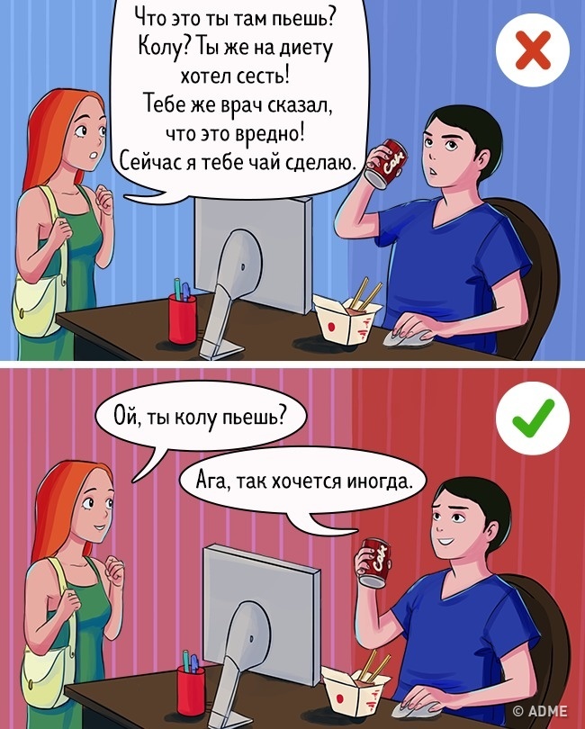 Зазвичай ця звичка з'являється у тих, хто довго був один. Незвично, що поруч є людина, у якого може бути інше, відмінне від нас думка з приводу побуту, відносин, так і взагалі життя. Для того щоб відносини були позитивні, обидва партнера повинні прислухатися один до одного і по можливості знаходити баланс між своєю думкою і думкою партнера.