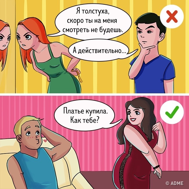 Як часто ми критикуємо себе, не замислюючись, що наші недоліки видно тільки нам самим. Партнер їх не помічає або не надає стільки значення, як нам здається. Якщо постійно повторювати про свої недоліки, то можна переконати в цьому свою половинку, що, звичайно, не додасть нам очок.