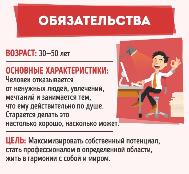Психологи виділяють різні етапи в житті людини. Але серед них є 4, на їхню думку, основних. З кожного такого етапу потрібно отримати користь і рухатися далі. Застрягши на якомусь одному, людина відчуває дискомфорт і буває незадоволений життям.