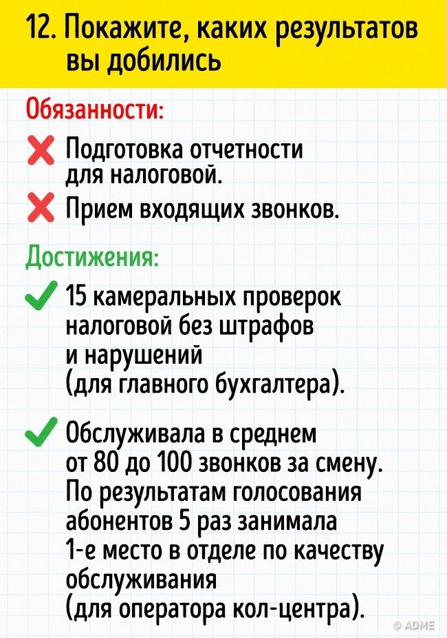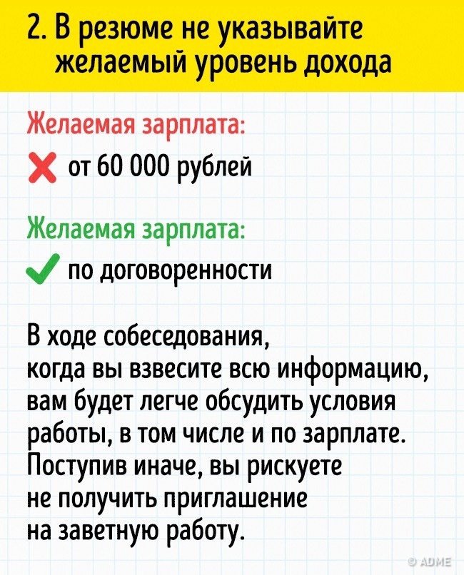 «Я проаналізував ринок праці і з'ясував, що в середньому фахівці мого рівня отримують 50 000 рублів. З них оклад — 25 000 рублів, плюс відсотки. Я вважаю, що можу претендувати на більш високу зарплату, так як мої основні досягнення — це...