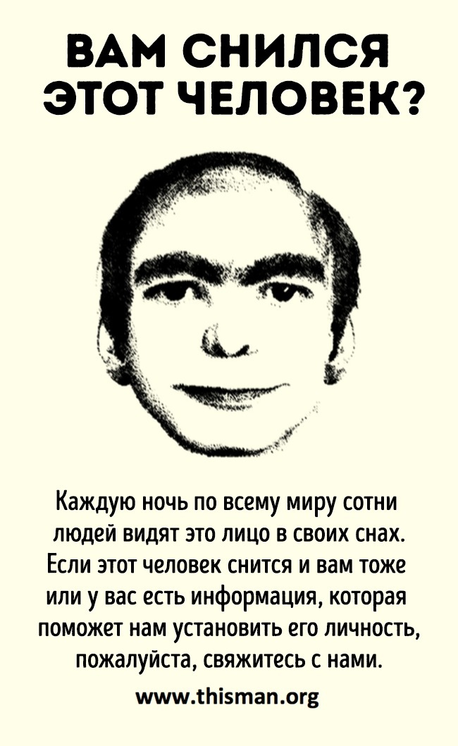В інтернеті періодично з'являються моторошнуваті відео і фото, супроводжувані таємничими історіями, в яких важко запідозрити рекламу. Наприклад, легенда про «цю людину», якого нібито бачили у сні чи не всі мешканці Землі. Але насправді все набагато простіше: «цю людину» не існує, а сайт, де розміщена інформація про нього, був створений для поширення вірусної реклами так і не вийшов поки фільму жахів.
