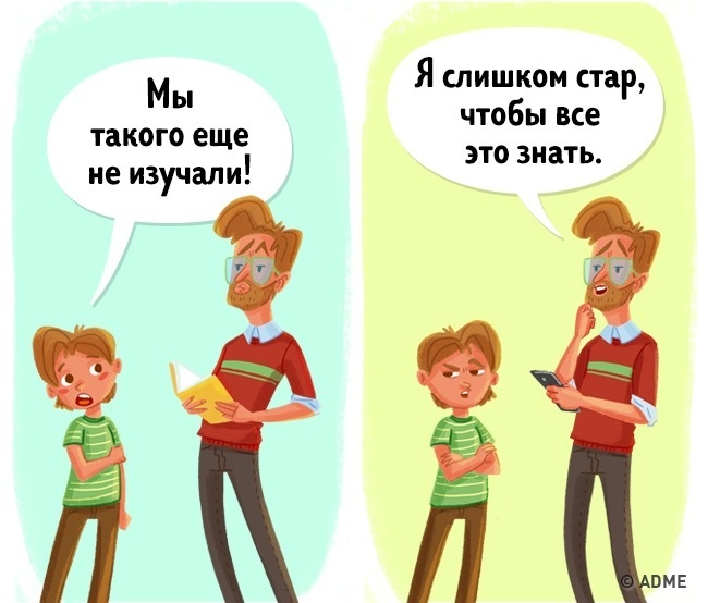 Коли ми щось не розуміємо, відмінний варіант відмазатися — вік. Це працює протягом усього життя: коли ми молоді, то завжди можемо сказати, що ще не встигли дізнатися, а з роками нашої відмовкою стає те, що ми вже не в тому віці, щоб встигати стежити за всіма новинками і розбиратися в них.