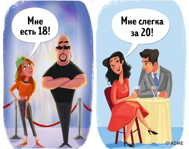 Вік — це не тільки чудова відмазка, але й причина появи нової нешкідливою брехні. У підлітковому віці нам хочеться швидше вирости, адже багато речей стають доступними лише після повноліття. Тому ми з впевненістю заявляємо, що нам, звичайно, вже є 18, а паспорт просто забули удома.