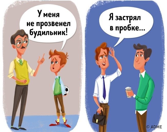 Вбігаючи в клас після дзвоника, ми завжди говорили, що вчитель у нас не продзвенів будильник, нас не розбудила мама, і розповідали інші цікаві історії замість того, щоб чесно зізнатися — проспали.