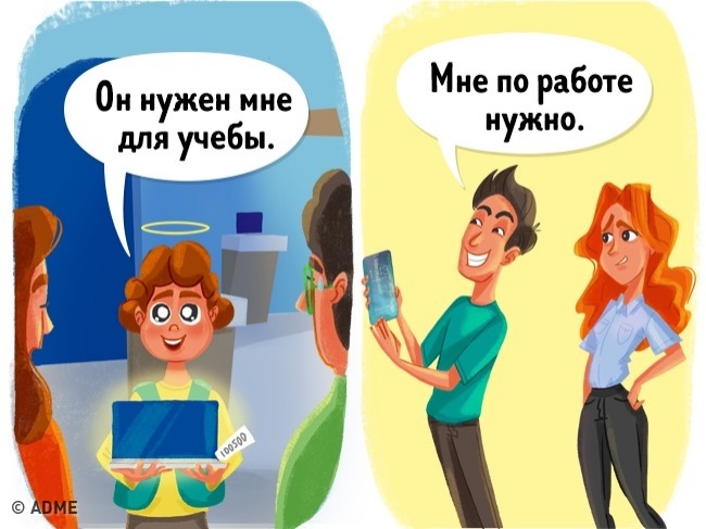 Купуючи такі гаджети у дорослому житті, розуміючи, що, можливо, не варто витрачати так багато грошей, ми заспокоюємо себе і оточуючих тим, що нам це належить за статусом», «потрібно для роботи», та й взагалі «я можу собі дозволити».
