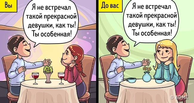 Компліменти як добрива: в розумних дозах вони допомагають нам розквітати, а в надлишку провокують недовіру. Бурхливі захвати на перших побаченнях насторожують. Швидше за все, ці фрази вже чули багато дівчат. Не сплутайте щирі почуття з пікап-вивертами і красномовством.