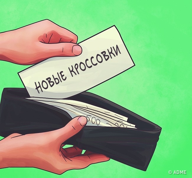 Якщо ви давно не можете зважитися на те, щоб побалувати себе чим-небудь приємним, поступите таким чином: наріжте кілька папірців розміром з купюру, напишіть на них ваші бажання і покладіть в гаманець. Кожен раз, коли замість реальних грошей в руках опиниться цей листочок, терміново біжіть в магазин і купуйте те, що на ньому написано.