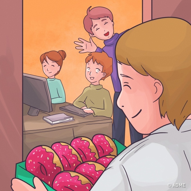 Здоровий психологічний клімат в колективі — запорука успішної і плідної роботи, і у ваших руках вплинути на нього найкращим чином. Візьміть коробку гарячих ароматних пончиків або почастуєте напарників домашнім пирогом. Ось побачите, день, а може, й тиждень пройдуть на висоті.