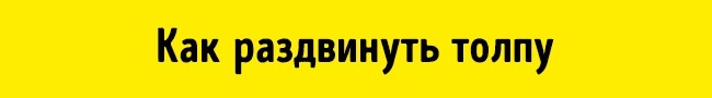 Якщо вам потрібно пройти через натовп людей — виконайте наш наступний трюк. Встаньте прямо і подивіться на вашу кінцеву мету руху. А тепер ідіть. Ви будете здивовані, але люди самі звільнять вам шлях! Цей трюк не спрацює в наступних випадках: якщо ви будете в сонцезахисних окулярах і якщо ви будете дивитися в смартфон.