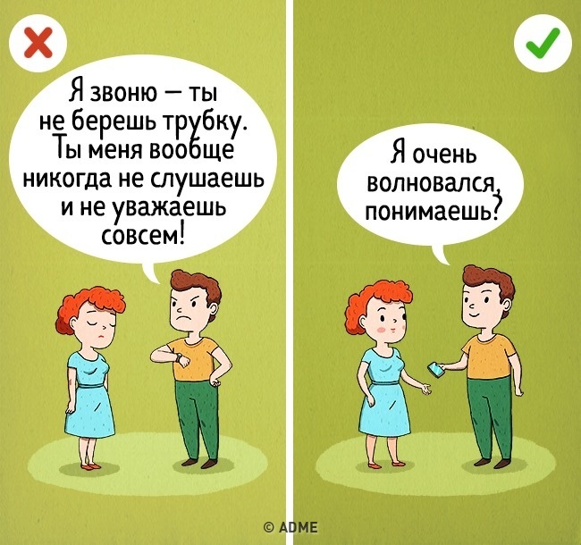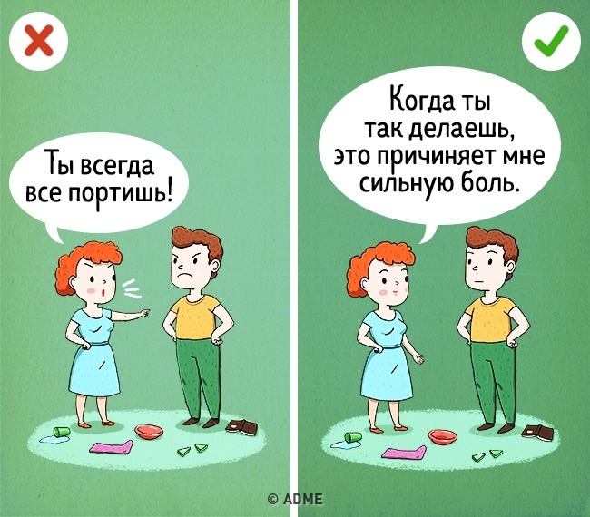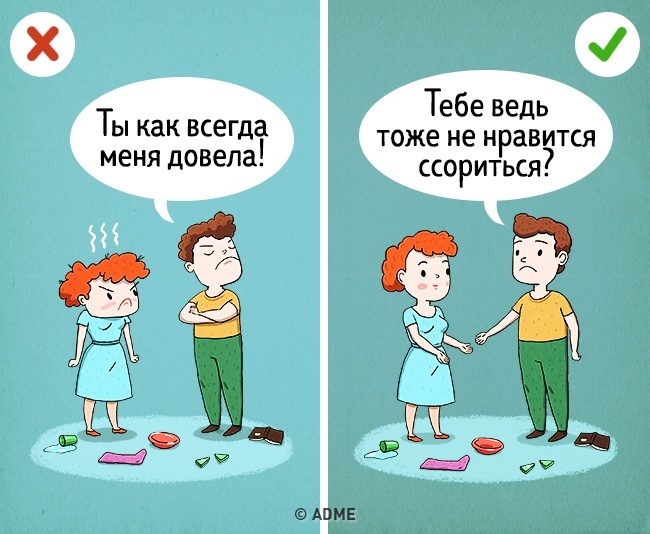 Критика особистості партнера тільки посилить ситуацію, особливо якщо тиснути на больові точки людини. Не ображайте партнера, а говорите про конкретних діях, які вас турбують.
