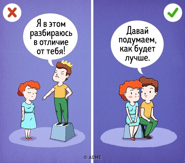 Не висловлюйте свою перевагу над партнером — так ви дорікаєте його в некомпетентності. Запропонуйте разом вирішити ваше питання.