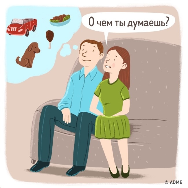 Про тисячі речей одразу і ні про що конкретне. Так само, як і дівчата. Ось тільки чоловіки набагато менше схильні ділитися своїми думками та переживаннями, тому не варто ставити їх у незручне становище таким питанням.