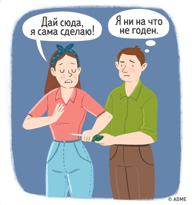Можливо, у вас і думки не було нікого образити — просто ви дійсно краще закручуєте гайки / миєте посуд / вибираєте краватки. Але для хлопця така фраза звучить як визнання його неспроможності.
