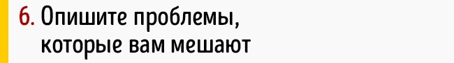 Візьміть аркуш паперу і перелічіть причини, по яких ви не можете здійснити ваші мрії. Конкретний список реальних проблем — хороший будівельний матеріал для дороги, яка веде до вашої мети. Як тільки ви опишете їх, з гори непереборних перешкод вони перетворяться в ряд завдань, які необхідно вирішити.