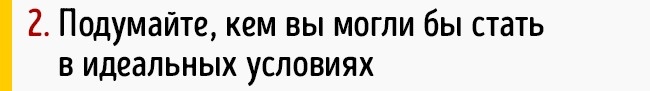 Опишіть на папері ваш звичайний день з життя вашої мрії. Проживіть його в деталях. Чим ви займаєтеся? З ким ви? Що відбувається, де і коли? Уявіть, що ви не обмежені в засобах, не в силах, ні в уміннях. Що ви абсолютно вільні.