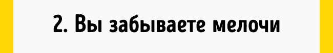 Відмінна пам'ять завжди була ознакою великого розуму, але, згідно з новітніми дослідженнями, саме забудькуватість є маркером високого інтелекту. Наш мозок забуває дрібниці з двох причин: по-перше, це допомагає адаптуватися в новій ситуації, а по-друге, усунення з пам'яті дрібниць узагальнює інформацію і показує картину цілком. Не варто лаяти себе, коли ви в черговий раз забули щось несуттєве, — можливо, ваш мозок просто розчистив простір для нових ідей.