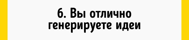 Здавалося б, це очевидно: люди з високими розумовими здібностями придумують щось нове. Але справа йде трохи по-іншому. Найчастіше люди з високим IQ здатні придумувати нестандартні рішення, але не використовувати їх у життя. Хоча б тому, що в процесі втілення їм в голову стукає нова ідея і вся увага переходить до неї. Що, до речі, підтверджує пункт 1.