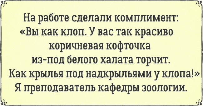 Буває, люди хочуть сказати вам щось приємне, а в підсумку изрекают шикарний перл, після якого ви, замість того, щоб сором'язливо залитися фарбою, голосно хохочете.