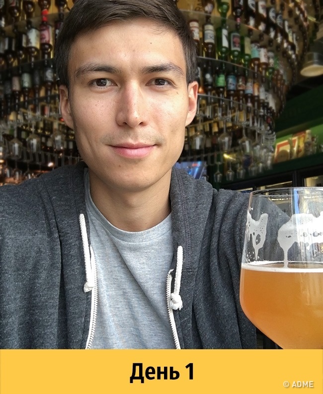 Повинен сказати, що у мене не так багато шкідливих звичок. Я часто бігаю вранці, а випиваю тільки по святах. Перед початком експерименту я сходив до лікаря, щоб перевірити здоров'я і переконатися, що все в порядку.