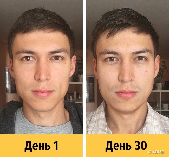 - Перший тиждень. Через кілька днів мого експерименту почала часто хворіти голова, хоча раніше такої проблеми не було. Я намагався робити знімки кожен день, щоб фіксувати результати. Порівнявши фотографії, помітив, що обличчя стало трохи припухлим і з'явилися синці під очима.