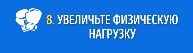 Почніть бігати, танцювати або боксувати. Останнє, до речі, переважніше, тому що так ви зможете дати вихід негативним емоціям. Збільшення навантаження позитивно позначиться на зовнішньому вигляді і, як наслідок, підніме самооцінку, яка після розлучення знаходиться в важкому стані. Крім того, будь-які види фізичної активності сприяють виробленню ендорфіну — того самого «гормону щастя».