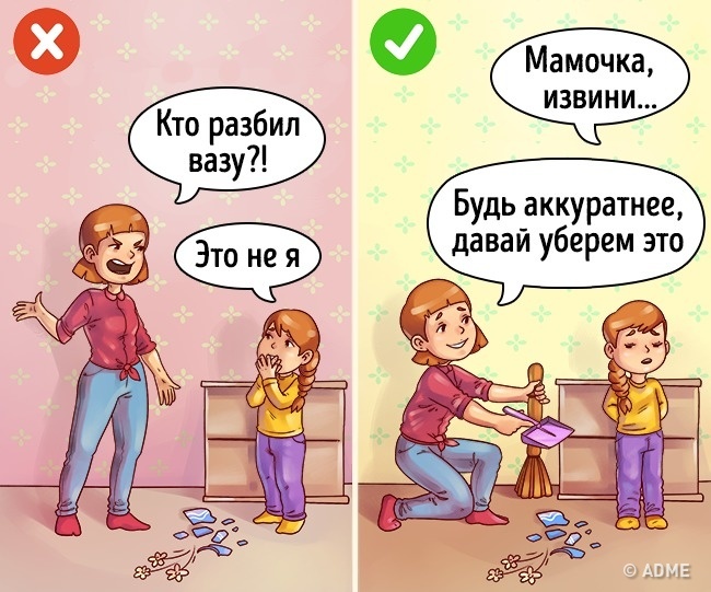 Рішення: зберігайте спокій. Поясніть дитині важливість чесності і довіри у відносинах. Продумайте адекватне покарання, яке покаже дитині, що брехня неприпустима. Якщо обман стає для нього нормою, це може бути ознакою більш серйозної проблеми — необхідно працювати в цьому напрямку з фахівцем.