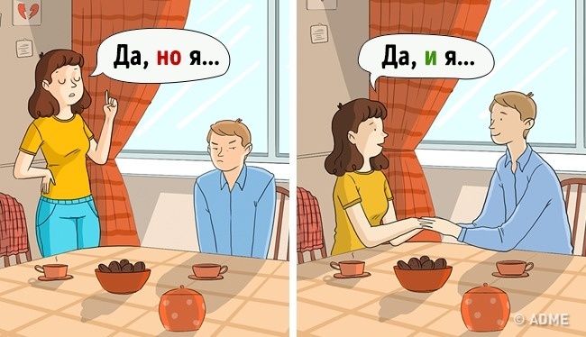 Це правило здається простим, проте вам доведеться пройти довгий шлях, щоб звикнути до такої заміни. Правда, зусилля того варті, адже це правило допоможе переключити спілкування з режиму словестной дуелі на режим співробітництва. Відчуйте різницю самі: