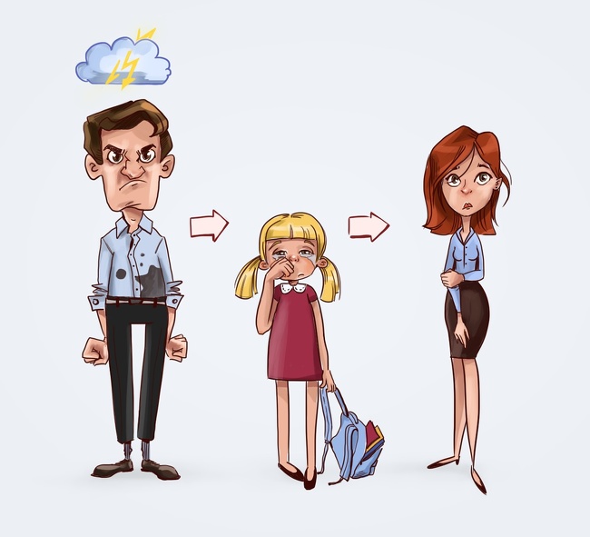 Ви снідаєте зі своєю сім'єю. Ваша дочка ненароком перекинула чашку з вашим кави прямо на вашу сорочку. Ви стрибаєте і кричіть на дочку, обзиваючи її растяпой. Дорікаєте свою дружину за те, що вона поставила чашку дуже близько до краю столу. Ви мчите в спальню, щоб переодягнутися, а по поверненні бачите заплакану доньку, яка не закінчила свій сніданок і не зібрала речі для школи.