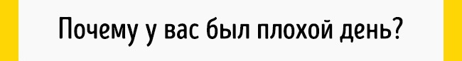 В результаті вона не встигає на шкільний автобус. Ваша дружина поспішає на роботу, і ви везете дочку в школу на своїй машині. Оскільки ви спізнюєтеся, то мчите, порушуючи правила дорожнього руху. Прийшовши на роботу з запізненням, ви виявляєте, що забули вдома потрібні папери. Ваш день почався жахливо і продовжується в такому ж дусі. Ви чекаєте не дочекаєтеся, коли він закінчиться. Прийшовши додому, ви бачите, що дружина і дочка в поганому настрої. У ваших відносинах спостерігається напруга.