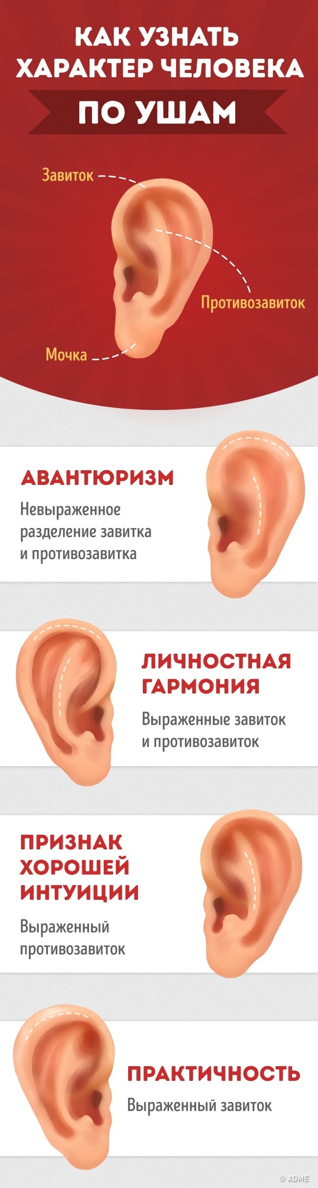 Є така наука — фізіогноміка. Вона вивчає зв'язок вигляду людини з його характером. Одним із самих головних органів, піддана физиогномическому аналізу на Стародавньому Сході, було вухо. По вухах китайські вчені могли визначити, яке дитинство було у людини і успішним він буде в майбутньому.