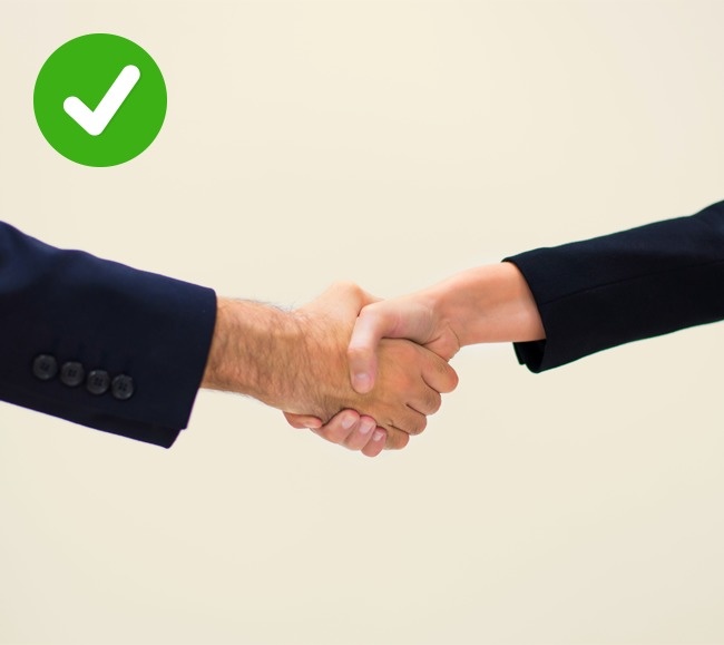 Ніколи не пожимайте руку мляво, нехай ваше рукостискання буде сильним і бадьорим. Це просигналізує, що ви людина впевнена в собі і діяльний. Звичайно ж, це не означає, що пальці ваших колег і знайомих повинні хрустіти під час привітання, у всьому потрібно знати міру.