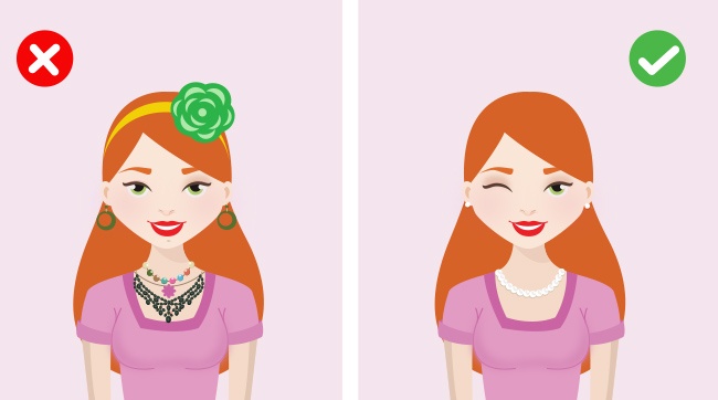 Пам'ятайте про правило: «Менше — значить краще». Не варто переборщувати з прикрасами — аксесуари повинні доповнювати ваш образ, а не перетягувати на себе увагу. Взуття також важлива, тому краще переконатися, що вона в чудовому стані.