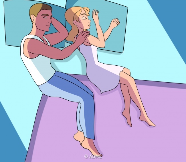 У цих людей все добре і спокійно. Так сплять закохані, які поважають особистий простір один одного. А їх дотичні спини — свідчення того, що кожному важливо відчувати присутність поруч другої половинки.