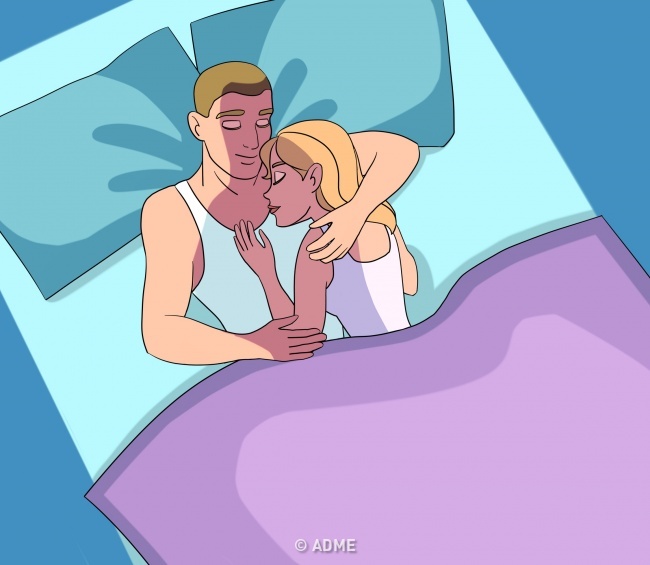У цій позі зазвичай сплять закохані, які почали зустрічатися не так давно, або ті, які змушені були довгий час проводити далеко один від одного.
