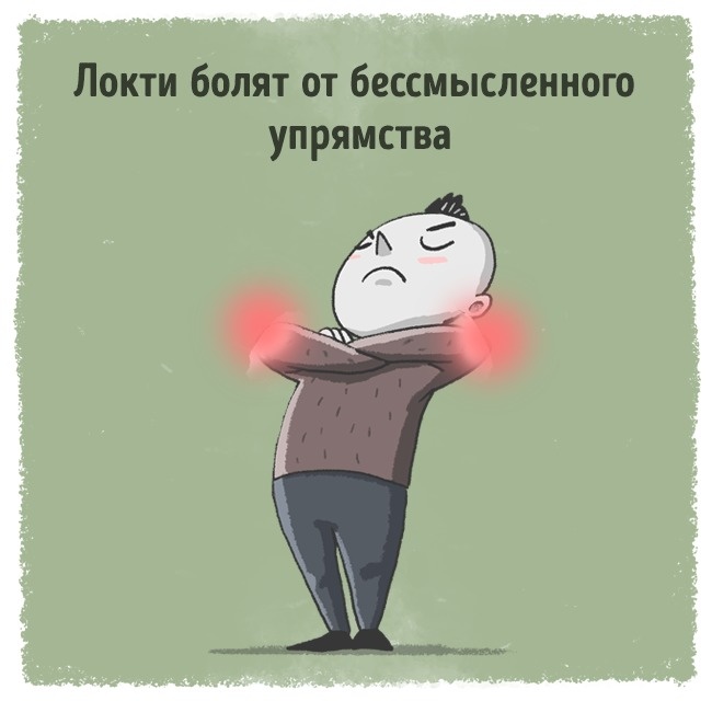 Біль в ліктях вказує на брак гнучкості, на занадто вперте небажання йти на компроміс. Швидше за все, ми противимося якимось важливим змінам у житті. Чи підсвідомо боїмося прийняти щось нове.
