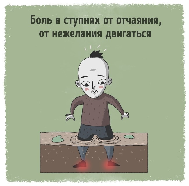 Причина болю ступень, ймовірно, в глибокій апатії. Як ніби наше тіло відмовляється йти далі, як ніби ми боїмося життя і не бачимо сенсу в русі вперед. Коли ми підсвідомо вважаємо, що все погано і життя не вдалася, наші ноги болять.