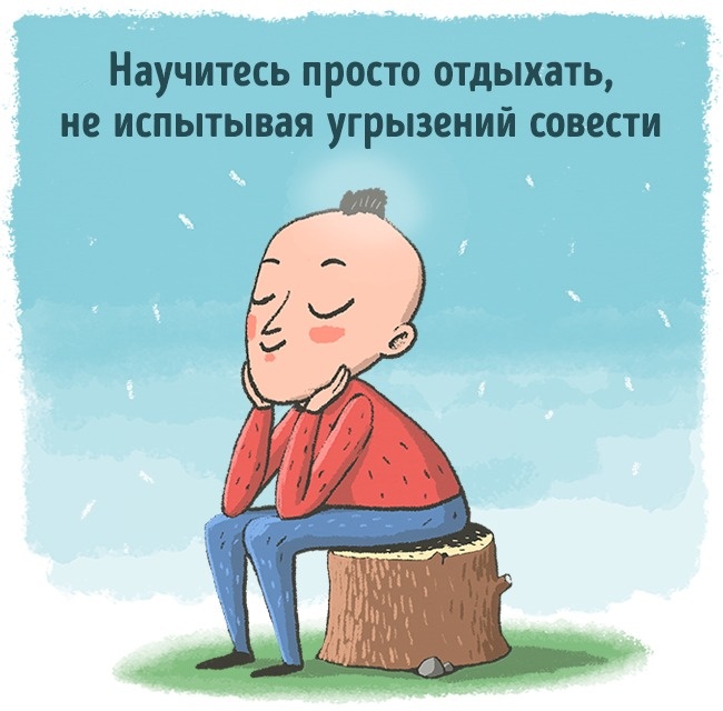 Кожен день залишайте час для себе. Дозволяйте собі розслабитися і не турбуйтеся про справи якийсь час. Відпочивайте і не картайте себе за це. Від цих хвилин простою» ваша продуктивність зросте. І голова боліти не буде.