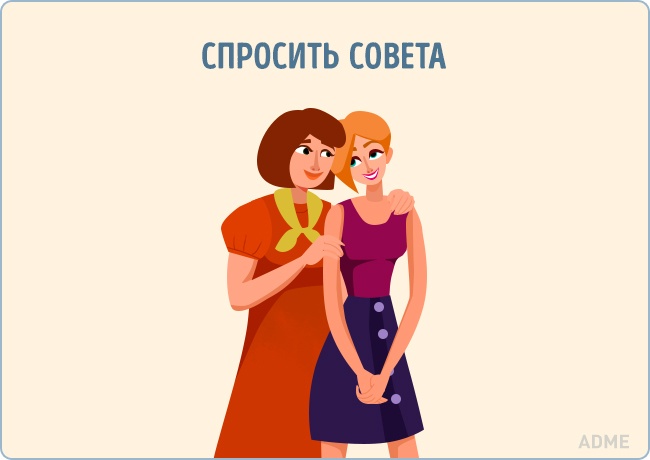 Приймати допомогу природно. Якщо все йде не так, можна попросити поради у того, хто пройшов через щось подібне. Або у мами — вона завжди зрозуміє.