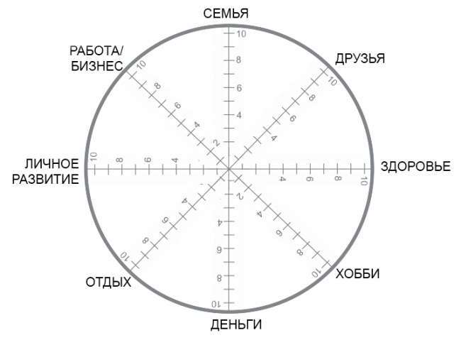 - Оцініть свої успіхи за минулий рік в кожній сфері за шкалою від 1 до 10. А потім з'єднайте позначки ваших успіхів лінією по колу.
