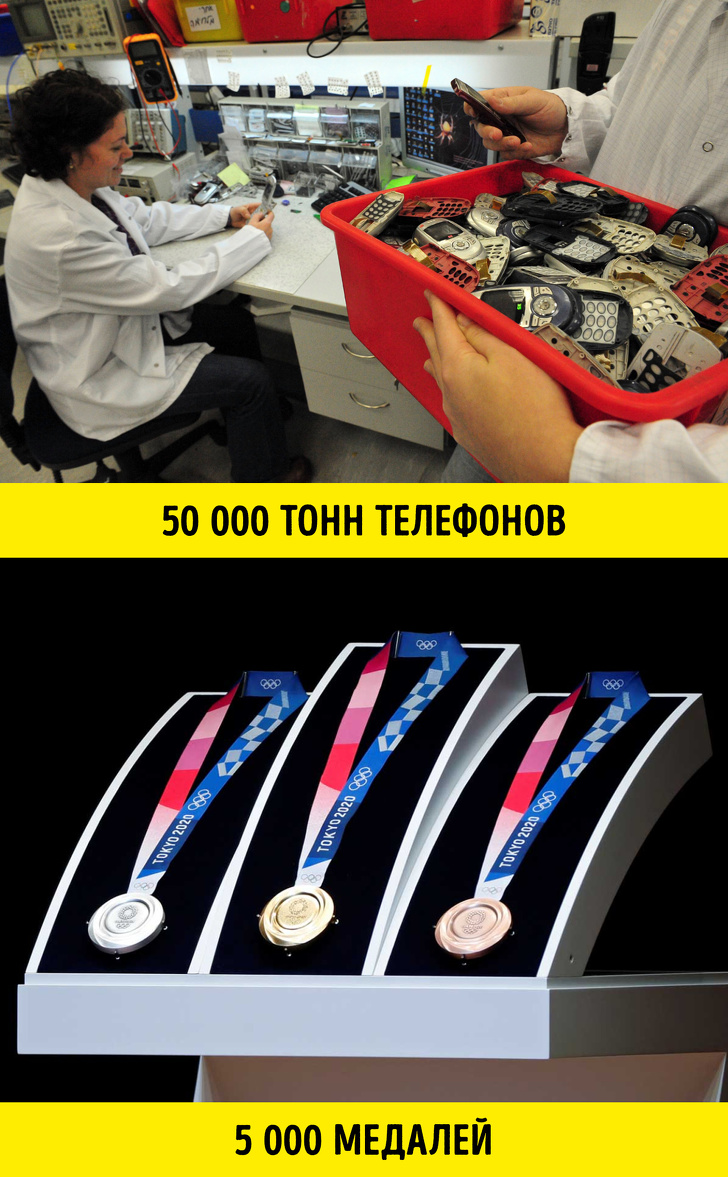 Навіть медалі були виготовлені з перероблених матеріалів. Як з'ясувалося, всі необхідні метали можна знайти всередині смартфона. Громадяни відгукнулися на заклик уряду і зібрали майже 50 тис. тонн старих гаджетів. Вийшло 32 кг золота, 3 500 кг срібла і 2 200 кг бронзи, чого вистачило на виготовлення 5 тис. олімпійських медалей.