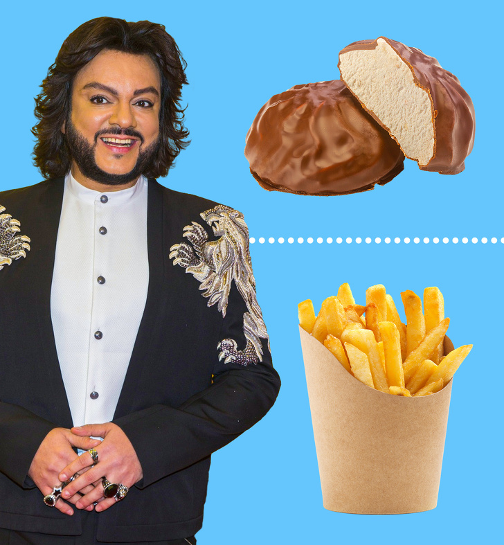 Незважаючи на зірковий статус, райдер артиста позбавлений примх. Якщо Кіркоров не сидить на дієті, в списку вимог може бути фастфуд (зокрема, картопля фрі) і котлета по-київськи, а також зефір в шоколаді і кока-кола. Співак набагато більш педантично ставиться до організації самого виступу і виконання вимог щодо сцени і устаткування, ніж харчування і проживання.