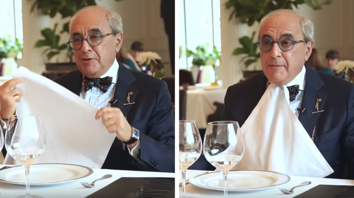 - Всупереч поширеній думці, тканинну серветку з етикету можна заправляти за комір. Але тільки в тому випадку, якщо ви збираєтеся їсти суп. При цьому краще ввічливо озвучити співрозмовнику, що ви збираєтеся скористатися серветкою, щоб не забруднитися.