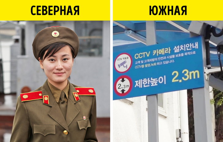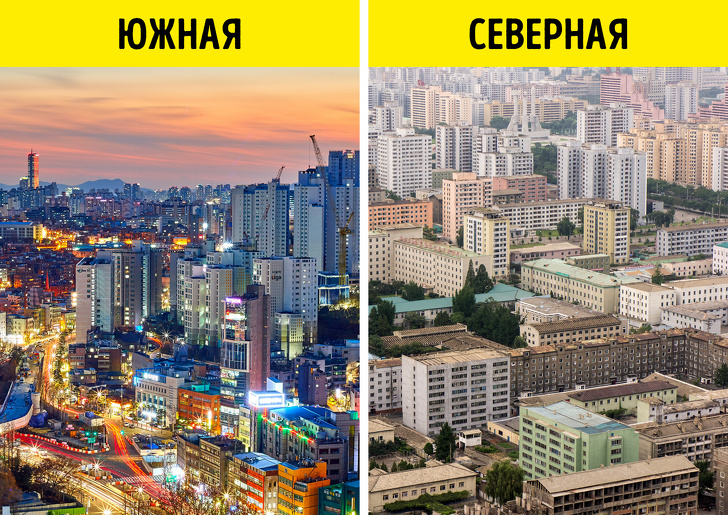 Південна Корея зробила крок далеко вперед у порівнянні з Північної, де більшість робіт виконується руками, а двигуни машин працюють на дровах. Реклами в Пхеньяні практично немає, в Сеулі — тисячі екранів на безлічі будівель.