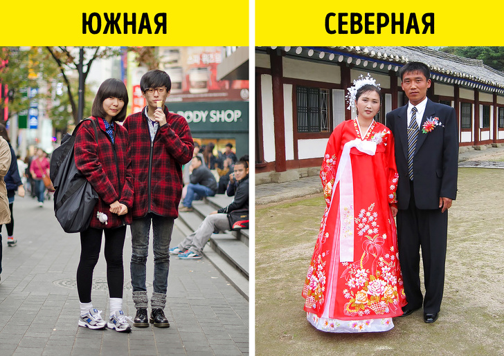 І в Північній, і в Південній Кореї хлопці і дівчата дуже залежні від думки батьків при виборі партнера. Але якщо у другій більшість вибирають пару самостійно, то в першій поняття «зустрічатися» немає взагалі, найчастіше одружуються по рекомендації батьків. Людини можуть одружити або видати заміж за того, кого він взагалі не знає.