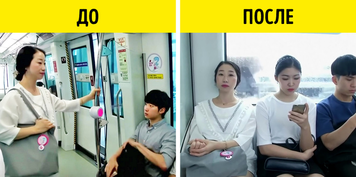У кожному південнокорейському вагоні є мінімум 2 місця для вагітних. Жінкам видають спеціальні брелоки, в які вбудований чіп. Як тільки жінка підходить до місця, то хвилі чіпа змушують спеціальний пристрій на поручні видавати слабкі звуки, щоб сидить поступився їй місцем.