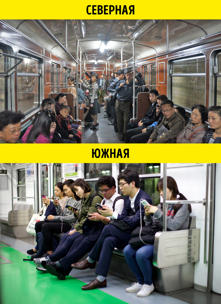 Північнокорейське метро — найглибше, південнокорейське — саме неглибоке, в кожному вагоні знаходяться 3 вайфай-роутера, до яких можна підключитися, маючи місцеву сімку. У Північній Кореї інтернету немає, а щоб зателефонувати за кордон, потрібно заповнити спеціальні документи. Сам же дзвінок будуть відслідковувати.