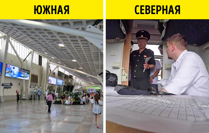 Метро в Північній Кореї відкрили на рік раніше, ніж у сусідній країні. От тільки там досі всього 2 гілки з 12 станціями, а вагони виробництва НДР не мінялися жодного разу. У Південній Кореї нові вагони додають кожен рік, там налагоджено своє виробництво, а від будь-якої станції, яких 316, можна доїхати до точки призначення декількома способами: на експресі і на поїзді з усіма зупинками. Деякі станції виглядають як повноцінні вокзали, а переходи між ними — як торгові центри.