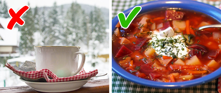 Насправді, випивши чай або кава, ви замерзнете ще швидше. Після прийому гарячої рідини кровоносні судини розширюються. Коли ви вийдете на мороз, організм з-за великої різниці температур втратить відразу багато тепла. Щоб не замерзнути, перед виходом замість чаю краще підкріпитися чимось живильним: отримані калорії будуть поступово спалюватися і зігрівати тіло.