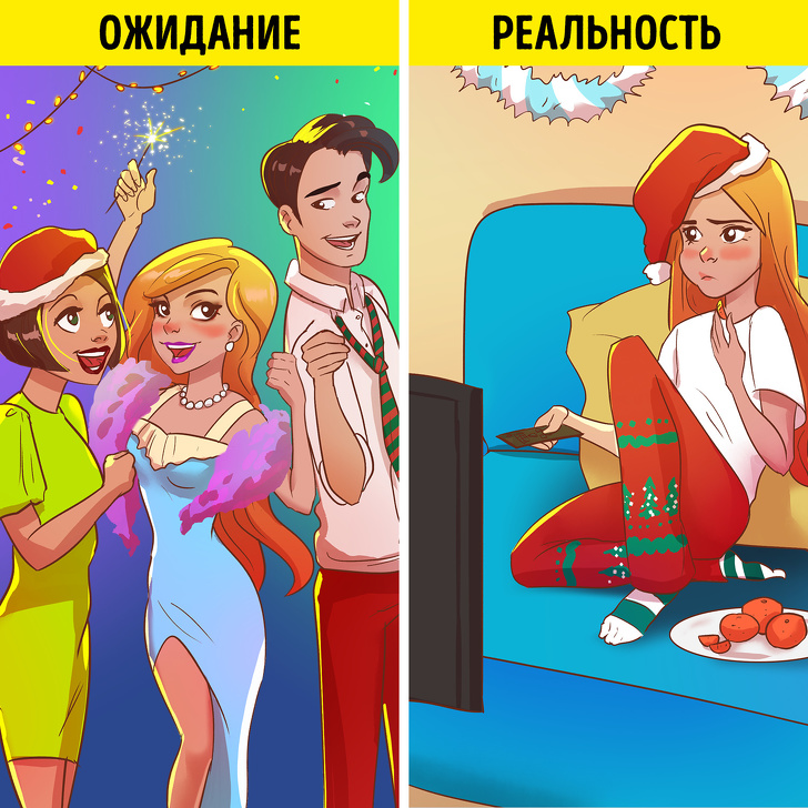До речі, про підсумки року. Згадайте всі свої плани та обіцянки, які ви давали собі і іншим в минулому році. І як багато із запланованого вдалося зробити? Якщо ви не надлюдина або син маминої подруги, якихось речей вам напевно досягти не вдалося. І чим більше ви мріяли в минулому році, тим більше шансів, що новорічний настрій призведе до новорічної депресії.