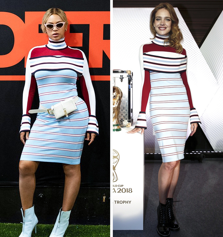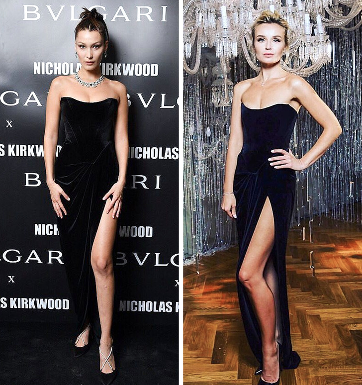Мабуть, кожній дівчинці хоча б раз у житті хотілося плаття як у подружки. А у дівчат і дам постарше виникало бажання створити образ, надихнувшись ідеями модного блогера. І знаменитості не виняток. Втім, виходи в однакових вбраннях можуть відбутися не тільки за бажання повторити вдалий образ колег по зірковому цеху, але і випадково або через недогляд стилістів. У будь-якому випадку в цьому немає нічого страшного — одне і те ж плаття виглядає абсолютно по-різному в залежності від того, як його обіграти, і від типу фігури.